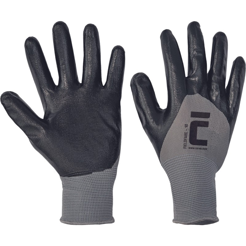 Trikotaj tikişsiz əlcəklər, ovuc və barmaqlarda qara nitrilə 3/4 batırılmış.